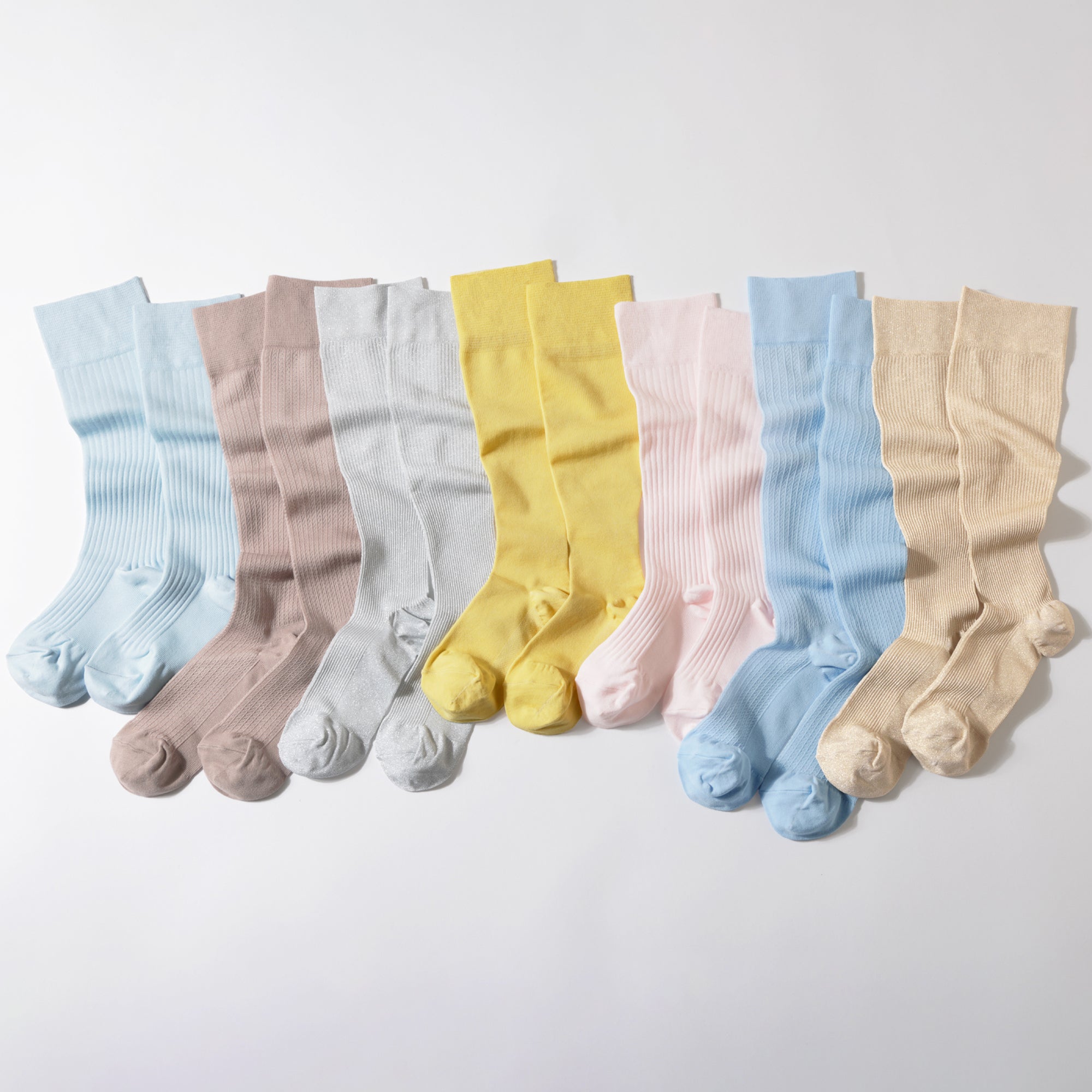 履き口は、ガーゼのようなソフトな肌あたりの編地に切り替えて、長時間履いていても食い込まず、なめらかで履きやすい設計に。つま先部分は日本人の足型にあうように編み立て、窮屈さを感じにくい快適な履き心地です。